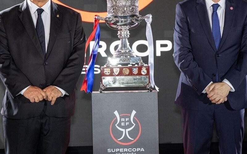 El hotel Marriott de Yeda acogió este sábado la recepción oficial de la Supercopa de España, moderada por Rafael Louzán, presidente de la Federación, y con Joan Laporta y Emilio Butragueño como principales representantes de Barcelona y Real Madrid. Como el año pasado, faltó Florentino Pérez, presidente del conjunto blanco, que aterrizó en la ciudad saudí en la tarde del sábado y no acudió al cóctel. La misma elección del año pasado en mitad de uno de los peores momentos de los últimos años en la relación entre las directivas de blancos y azulgranas.